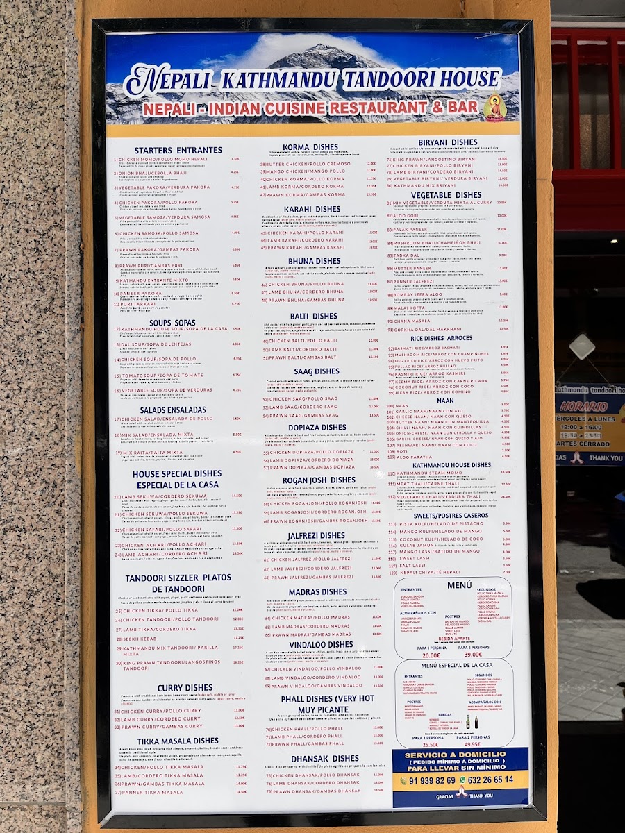 Introducing the Menu at Nepali Kathmandu Tandoori House